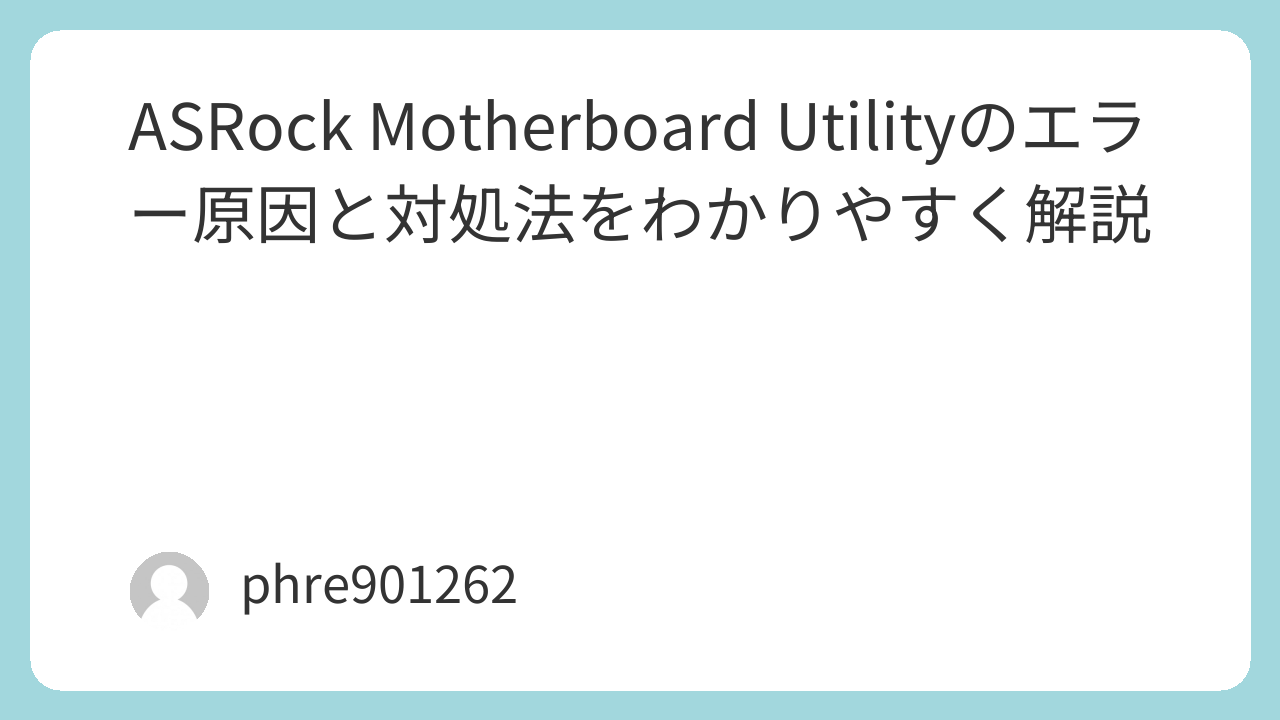ASRock Motherboard Utilityのエラーは、見た目ほど複雑ではありません。多くは、導入版の不一致、BIOSやドライバの不整合、Windows側の保護機能、関連ソフトの競合で説明できます。