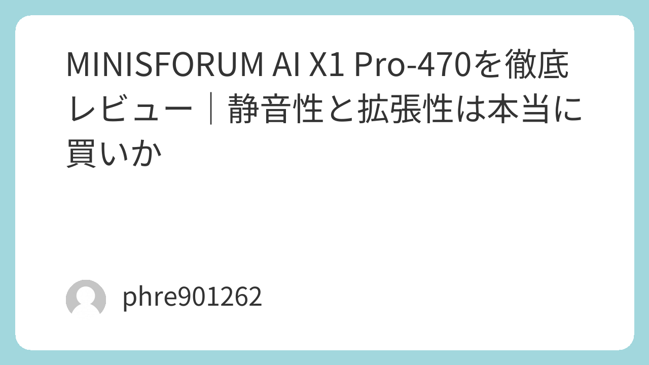個人的には、静音性に優れたミニPCは「性能が高い」以上に価値があると感じています。スペックが多少高くても、うるさければ結局使う場所を選びます。その点、MINISFORUM AI X1 Pro-470は書斎にもリビングにも置きやすい一台として期待できます。