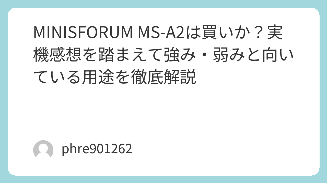 結局のところ、MINISFORUM MS-A2は「誰にでもおすすめしやすい機種」ではなく、「合う人には非常に強くおすすめできる機種」です。