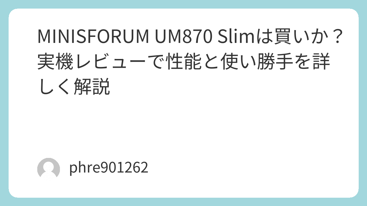 結論からいうと、MINISFORUM UM870 Slimは、机の上を広く使いたい人や、在宅ワーク用の省スペースPCを探している人にはかなり相性がいい一台です。数字上の性能だけでなく、使っている人の感想を追っていくと、「思ったよりサクサク動く」「軽作業では静か」「小さいのに頼りない感じがしない」といった評価が目立ちます。
