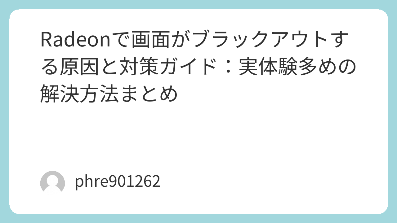 Radeon環境でのブラックアウトは、単純な画面不具合というより、ドライバーの応答不良やハードウェア周りの影響など複数要因が絡むことが多いです。今回紹介した体験ベースの対処法を順に試していくことで、多くの場合に改善が見られるはずです。もし何度試しても改善しない場合には、専門家の診断やハードウェア交換を検討することをおすすめします。