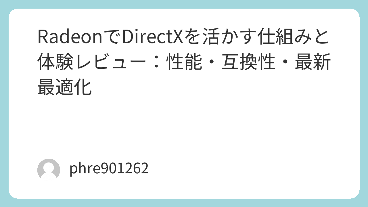 RadeonとDirectXの組み合わせは、特に最新世代のゲームで大きな恩恵をもたらします。私の体験では、DirectX 12対応タイトルでのフレームレート向上、リアルなレイトレーシング、安定性改善を実感しました。一方で、古いゲームとの互換性やドライバー最適化は注意点です。Radeon Softwareを活用して設定を調整することで、DirectXの性能を最大限に引き出すことが可能です。