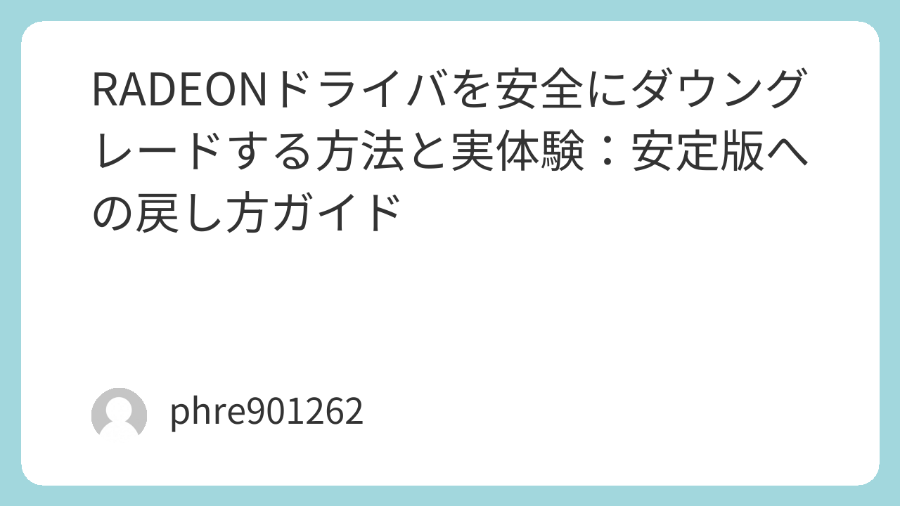 RADEONドライバを安全にダウングレードする方法と実体験:安定版への戻し方ガイド