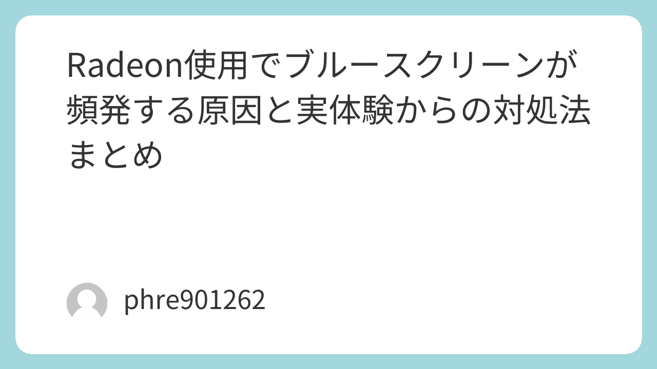 Radeonでブルースクリーンが発生する原因は多岐にわたりますが、体験に基づいた対処法を順に試すことで、多くのケースで改善可能です。ドライバ管理と設定調整を丁寧に行い、安定した環境でGPUを活用しましょう。
