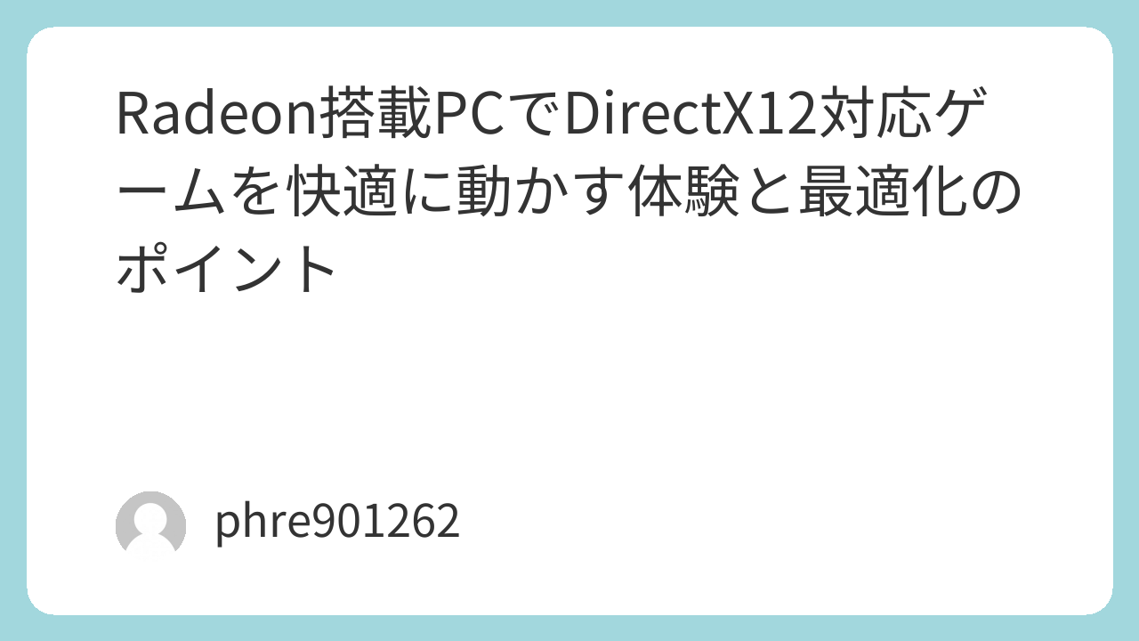 Radeon搭載PCでDirectX12対応ゲームを快適に動かす体験と最適化のポイント