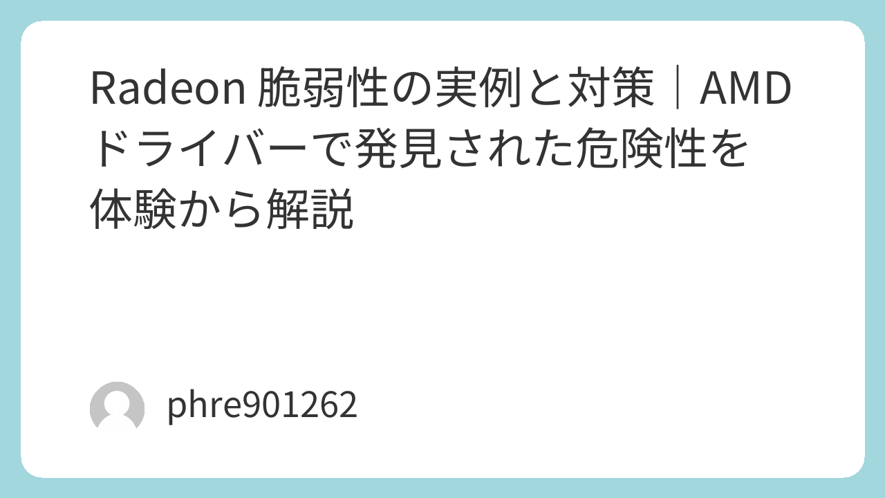最近、Radeon グラフィックスカードに関する脆弱性の報告が増えています。これらの脆弱性は、GPU ドライバーやファームウェアの不具合を悪用することで、不正なコード実行やシステムクラッシュにつながる可能性があります。私自身も古い Radeon ドライバーを使用していた際、特定のアプリケーションで異常終了が頻発し、セキュリティ面でも不安を感じたことがあります。