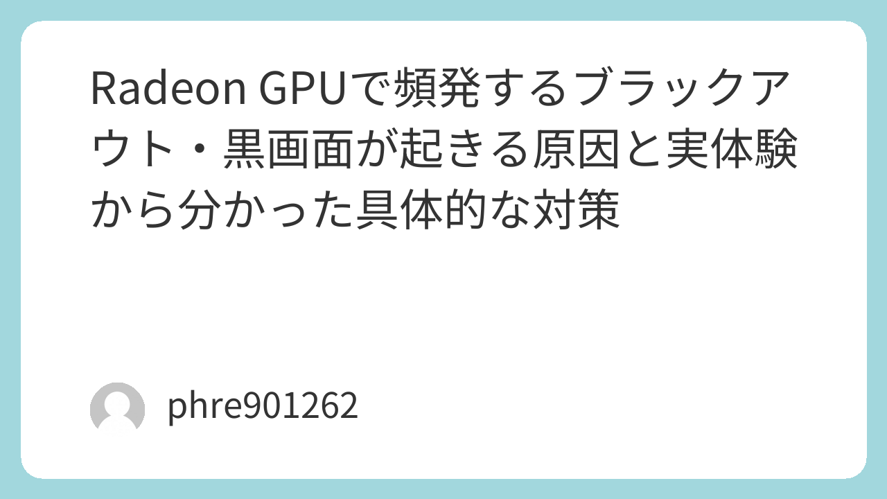 Radeonでのブラックアウトは、ドライバ・ハード・接続環境のどこかに原因があります。体験からの優先対策は以下の通りです。