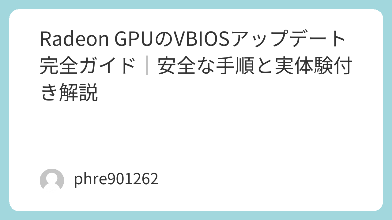 例えば古いRadeonカードで最新ゲームが正常に動作しなかった場合、VBIOS更新で安定した例があります。 - 公式メーカーやディストリビュータの提供