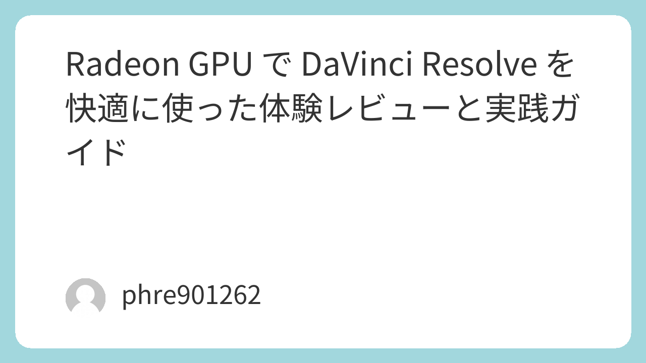 動画編集ソフトとして業務レベルでも人気の高い DaVinci Resolve は、カラーグレーディングやVFXといった高度な処理で GPU の性能を強く必要とします。GPU の選び方や実際の体験談を交えながら、Radeon 系グラフィックボードの実用例を紹介します。(ウィキペディア)