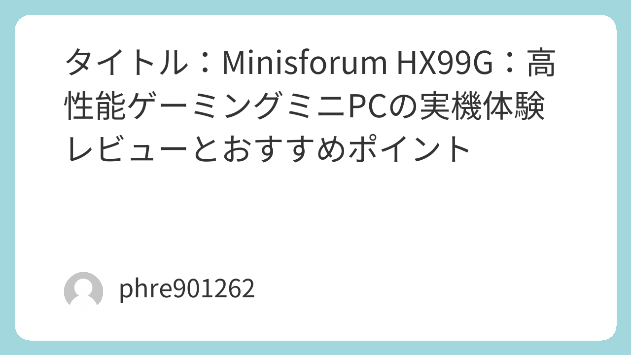 タイトル:Minisforum HX99G:高性能ゲーミングミニPCの実機体験レビューとおすすめポイント