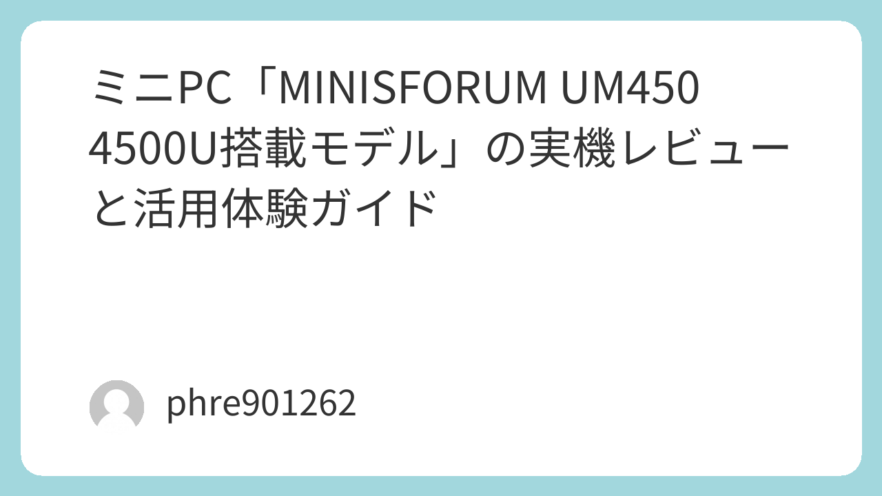 ミニPC「MINISFORUM UM450 4500U搭載モデル」の実機レビューと活用体験ガイド