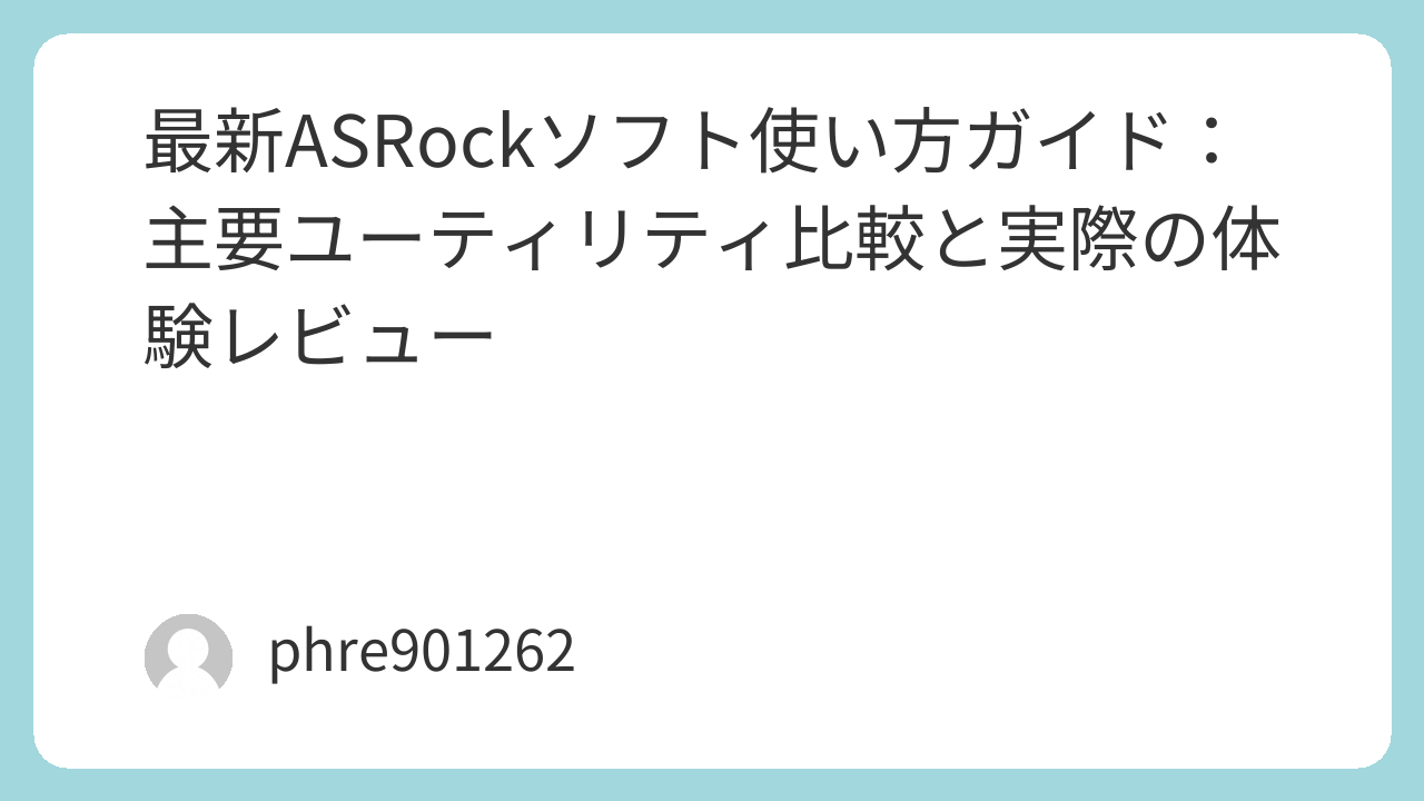 ASRockのソフトは、ユーザーがPC環境を最適化するために非常に役立つツールです。実際に試してみて、各ユーティリティがどのように動作するかを確認し、自分のニーズに最も合ったツールを選びましょう。