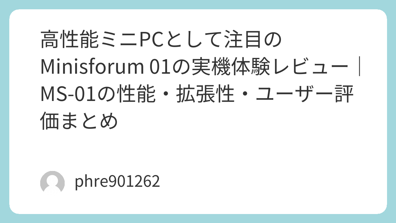 近年、デスクトップPCに匹敵する性能をコンパクトな筐体で実現したミニPCが注目を集めています。その中でも、Minisforum 01(正式にはMinisforum MS‑01)は、特に高性能なモバイルCPUを搭載し、個人利用から小規模な業務用途まで幅広く活用できるモデルとして評価されています。本記事では、Minisforum 01の実機体験を中心に、性能や拡張性、ユーザーからの評価を詳しく解説します。