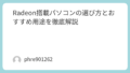 私の感覚では、GPU選びは“最高性能を買う競争”ではなく、“自分の使い方にぴったり合う余裕を買う作業”です。見栄えのいいスペックに引っ張られすぎず、解像度、VRAM、予算、電力まで含めて見ていくと、Radeon選びはぐっと分かりやすくなります。