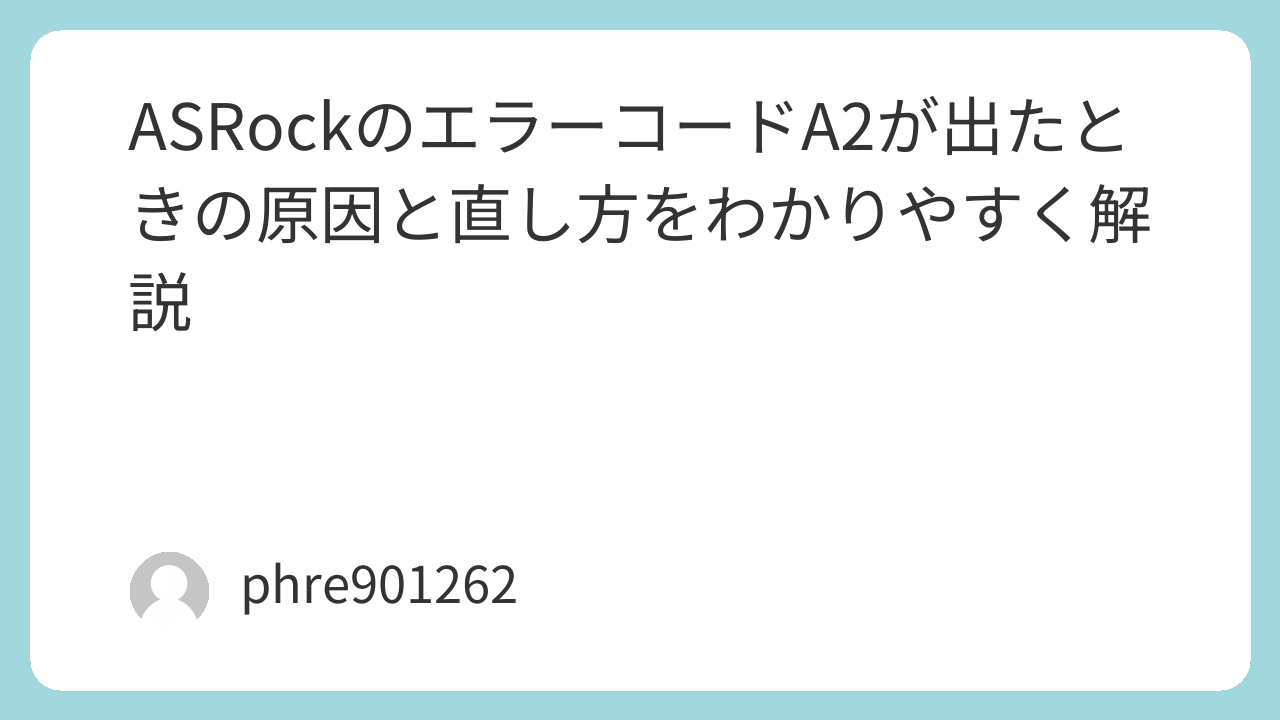 ASRockマザーボードで電源を入れたあと、POSTコードにA2が表示されたまま先へ進まない。この症状に出会うと、いきなり故障を疑いたくなるものです。けれど実際には、いきなり基板そのものが壊れているとは限りません。
