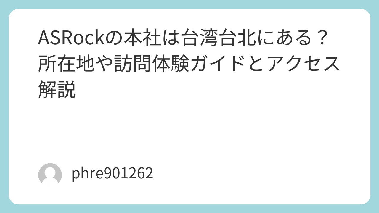 ASRockの本社は、台湾の台北市北投区中央南路二段37号2階にあります。台北の中心からアクセスしやすい位置にあり、台湾国内外から多くの訪問者が足を運びます。周辺は静かなエリアで、周囲の自然環境も豊かです。台湾を訪れた際には、アジアのIT業界の中心地としてASRockの本社を訪れるのも、興味深い体験になるでしょう。
