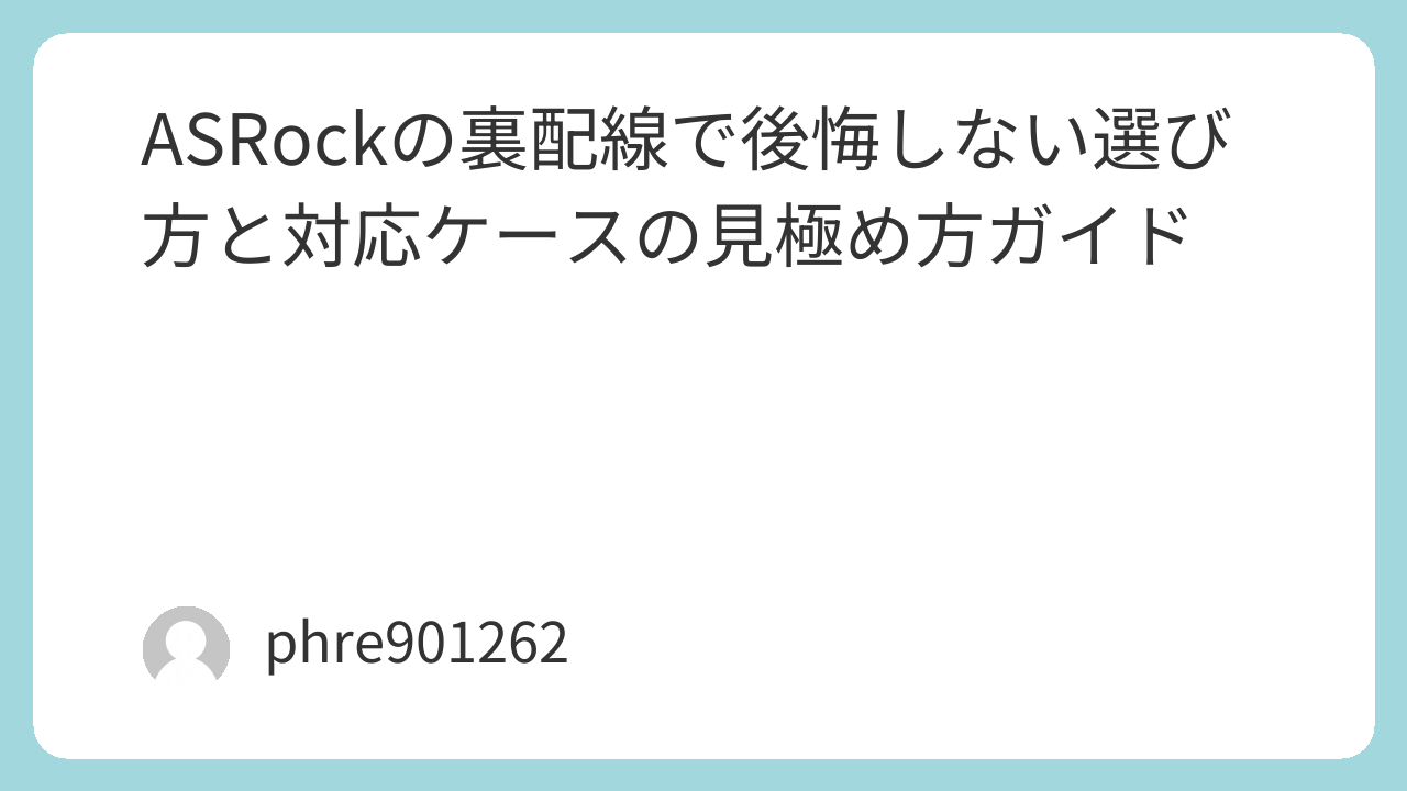 逆に言えば、対応ケースとの組み合わせをきちんと見極めておけば、裏配線はとても満足度の高い選択肢になります。これからASRockで新しく自作するなら、表の美しさだけでなく、裏の余裕まで含めて選ぶ。それが後悔しない一番の近道です。