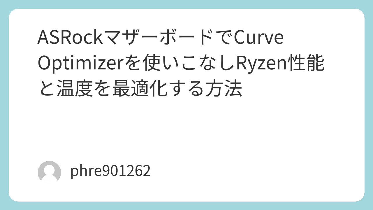 ASRockマザーボードでCurve Optimizerを使いこなしRyzen性能と温度を最適化する方法