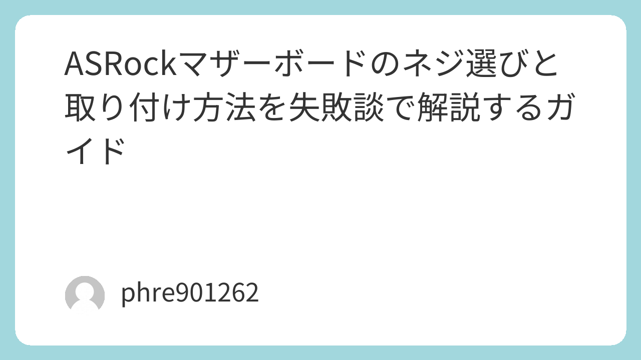ASRock製のマザーボードでPCを組み立てる際、ネジの選び方と取り付け方法は非常に重要です。最初はネジが不足していることに気づかないかもしれませんが、適切なネジを選び、しっかりと取り付けることで、後々のトラブルを防ぐことができます。ネジに関する問題が発生した場合には、ネットでネジセットを購入することをお勧めします。自作PCの組み立ては、ネジ一つで大きく左右されることを忘れずに作業を進めてください。