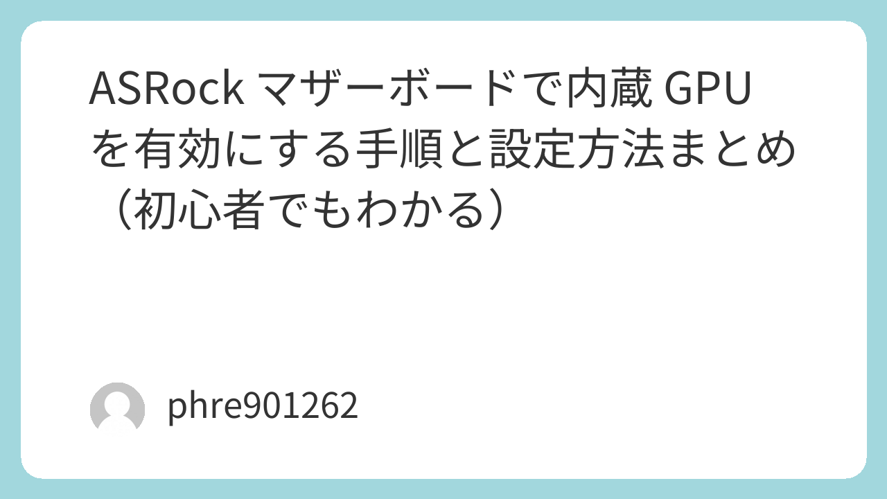 まず、ASRock マザーボードで内蔵 GPU を有効にするためには、いくつかの確認が必要です。