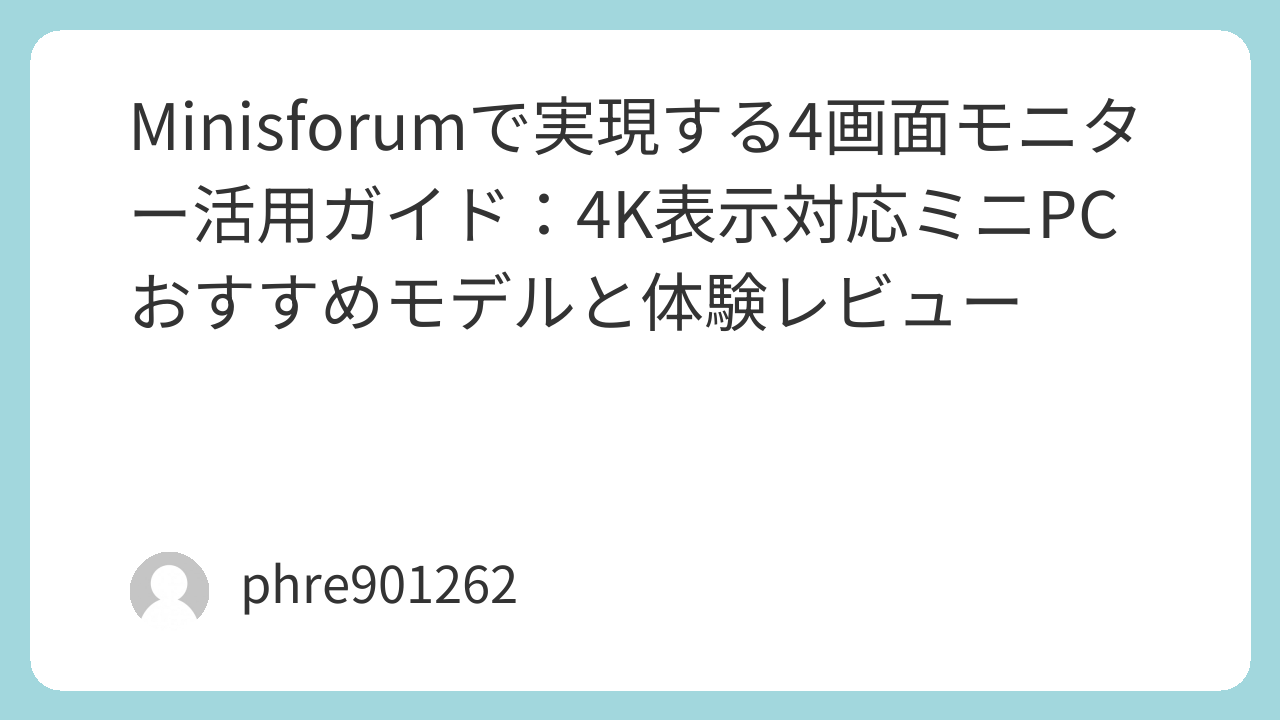 Minisforumで実現する4画面モニター活用ガイド:4K表示対応ミニPCおすすめモデルと体験レビュー