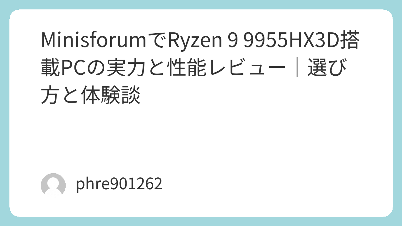 MinisforumのRyzen 9 9955HX3D搭載モデルは、高性能なPCをコンパクトにまとめたい人や、ゲームやクリエイティブ作業をこなすためのPCを求めている人に最適な選択肢です。日常作業から重いゲーム、動画編集まで広く対応できる性能を持ちながら、サイズはコンパクトで、持ち運びや設置場所にも困りません。