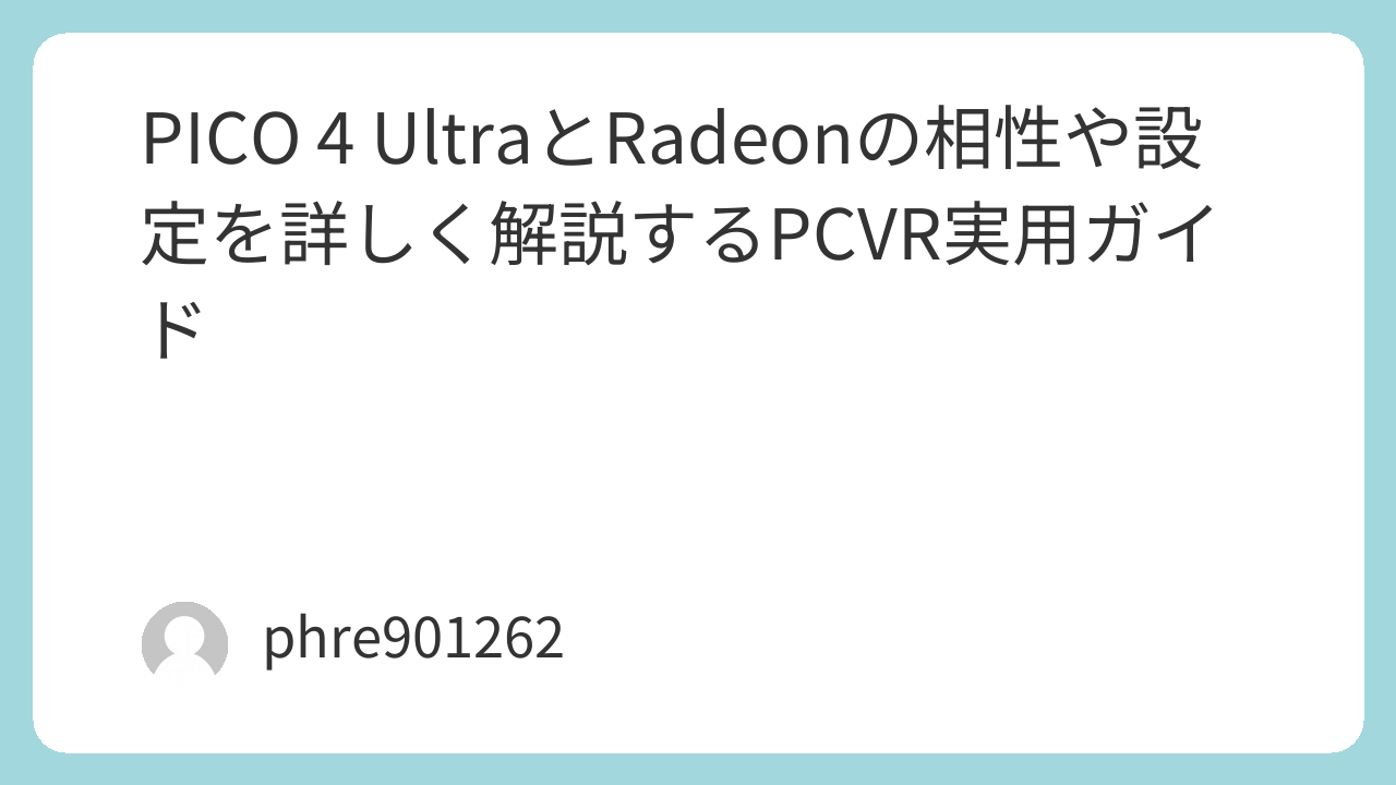 この記事では、PICO 4 UltraRadeonの組み合わせでPCVRを快適に使うために、相性の考え方、つまずきやすい点、設定の詰め方をまとめて解説します。これから導入する人にも、すでに使っていて「何となくしっくりこない」と感じている人にも役立つ内容にしました。