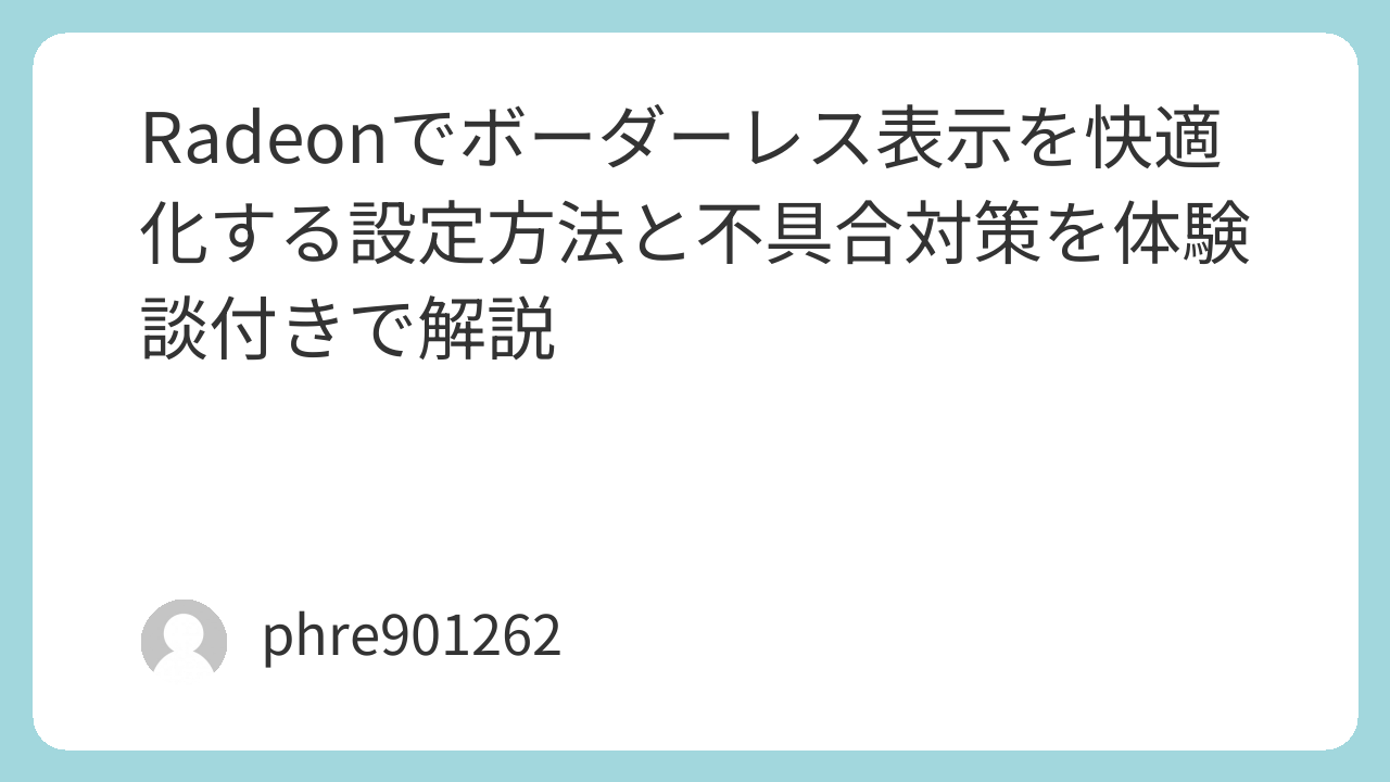 この記事では、Radeon環境でボーダーレス表示を使うメリットとデメリット、快適にする設定方法、不具合が出たときの対処法まで、実体験を交えながらわかりやすく解説します。