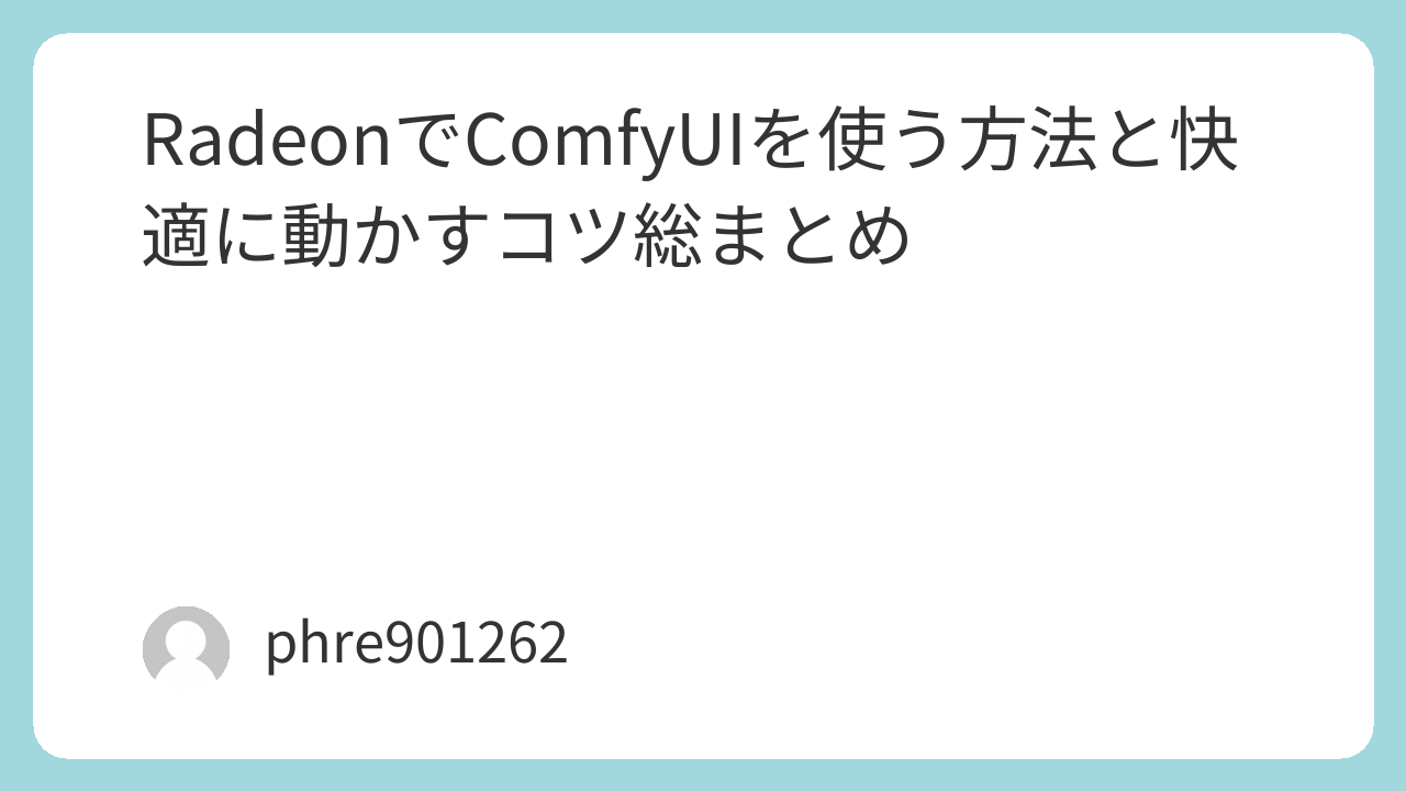 RadeonでComfyUIを使うことは、いまや十分に現実的です。ただし、「誰でも同じように簡単」とまでは言えません。成功しやすい条件を選び、最小構成で確認しながら進めることが重要です。