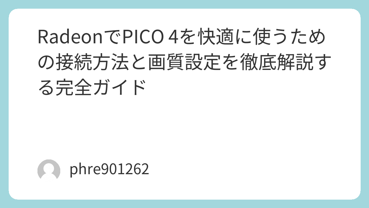 RadeonとPICO 4を組み合わせたとき、よくある悩みはだいたい共通しています。