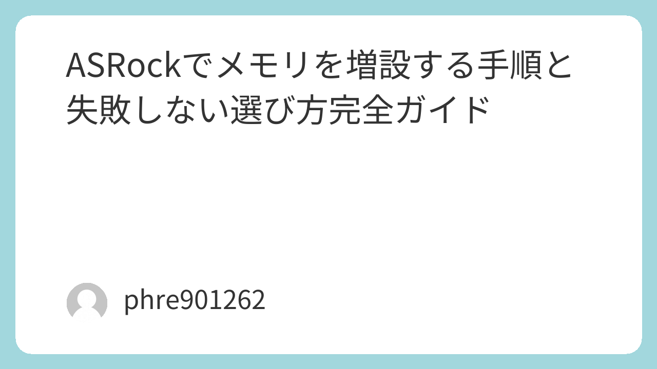 この記事では、ASRockマザーボードにメモリを増設する前の確認事項から、実際の作業手順、ありがちな失敗、起動しないときの対処、失敗しにくい選び方まで、体験を交えながら詳しくまとめます。