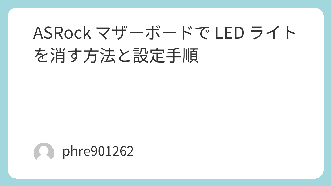 私自身もこの設定が気になり、実際に設定を変更してみました。以下の手順で、ASRock マザーボードの LED ライトを消すことができました。