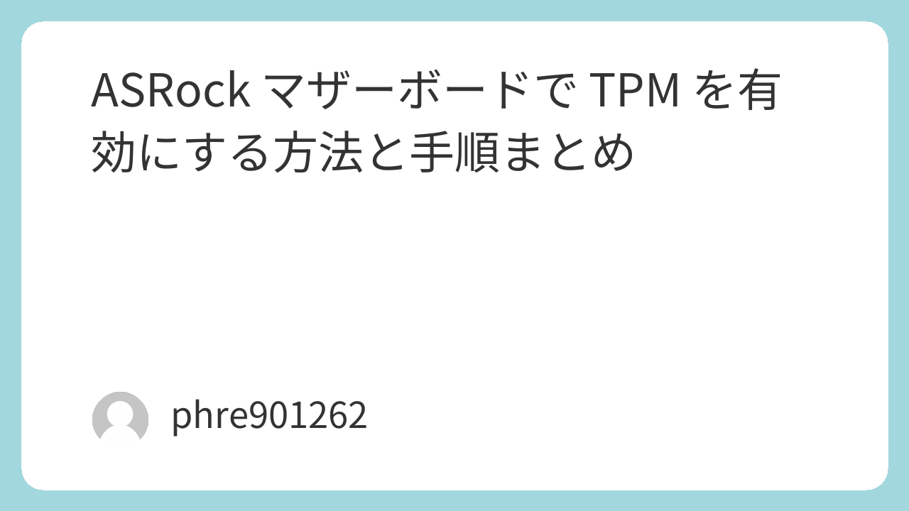 Windows 11 をインストールするためには、TPM(Trusted Platform Module)2.0が必須です。TPM とは、セキュリティ機能を強化するための専用チップで、データの暗号化やセキュアブートなど、PCのセキュリティを高めるために使用されます。特に ASRock のマザーボードでは、TPM の設定方法が少し異なり、手順に注意が必要です。ここでは、ASRock のマザーボードにおける TPM を有効にする方法を実体験を交えて解説します。