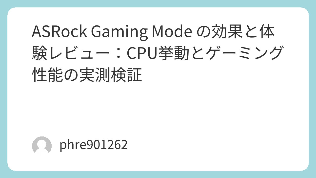 ASRock Gaming Mode の効果と体験レビュー:CPU挙動とゲーミング性能の実測検証