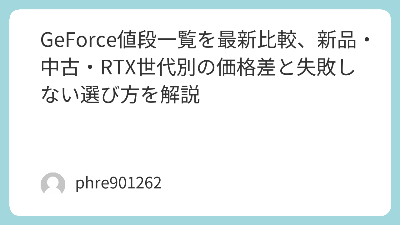 GeForceの値段一覧を見るときは、単純な最安比較だけでは足りません。新品か中古か、最新世代か旧世代か、GPU単体か搭載PCか。この整理をしてから見れば、情報はかなり読みやすくなります。