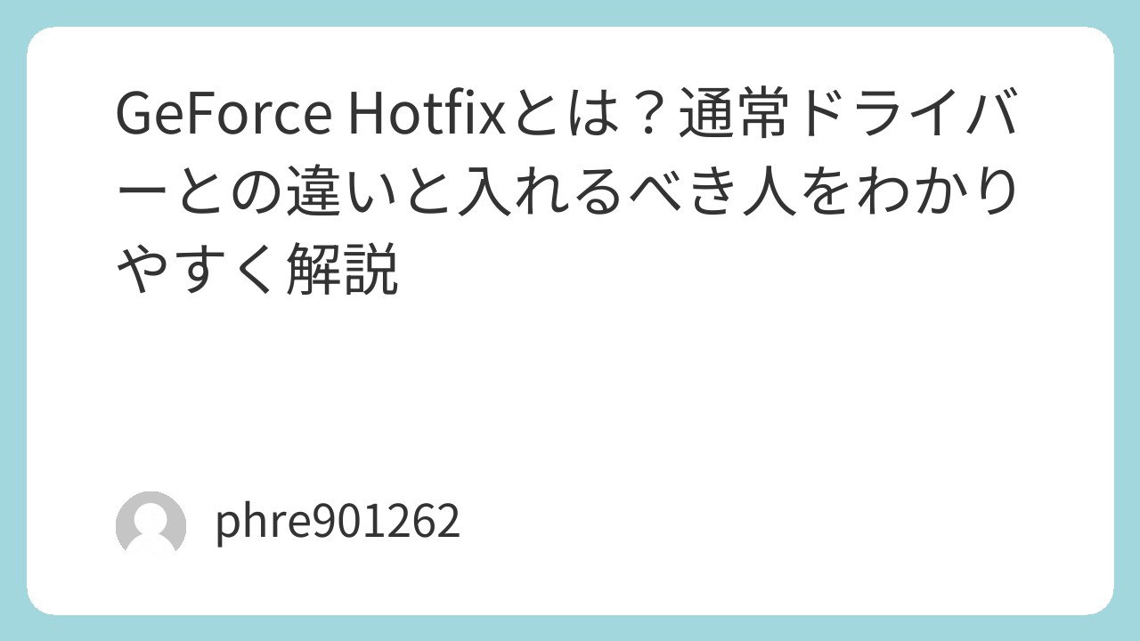 GeForce Hotfixが気になったとき、最初に知っておきたいこと