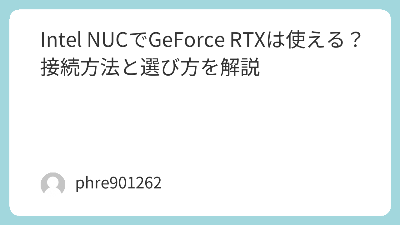 - Intel NUCでGeForce RTXを使いたい人が最初に知るべきこと