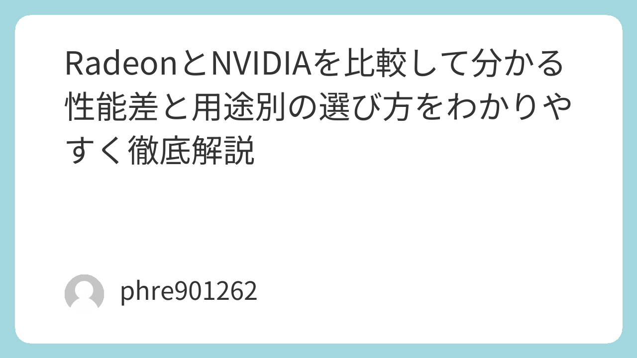 RadeonとNVIDIAの比較はまず結論から見れば迷いにくい