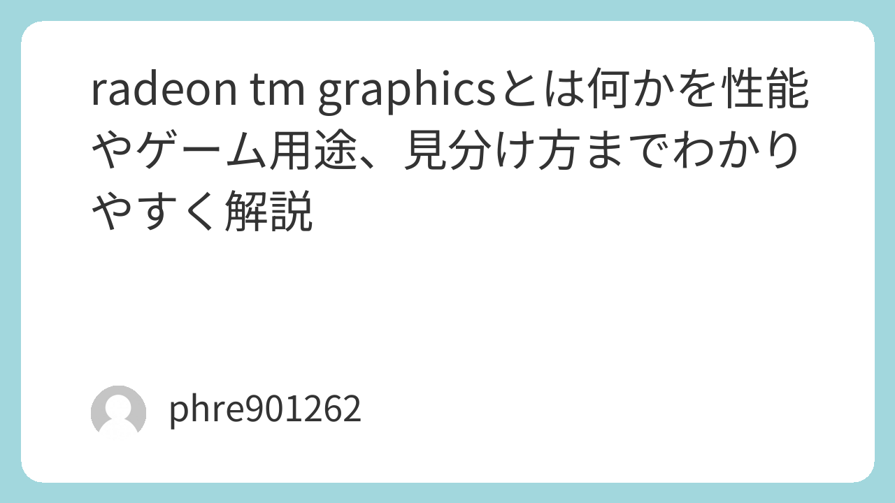 ノートPCやミニPCのスペック表、あるいはWindowsのタスクマネージャーを見たときに、radeon tm graphics という表示が出てきて「これって結局どんなGPUなの?」と戸惑ったことがある人は多いはずです。私自身、最初にこの表記を見たときは、独立したグラフィックボードの名前なのか、それともCPUに入っている簡易的な表示なのかが分かりづらく、かなり混乱しました。