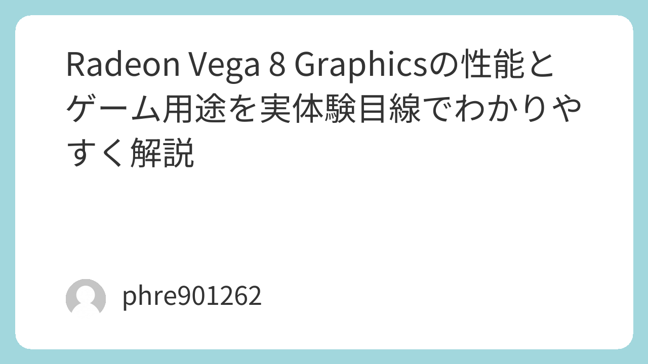 Radeon Vega 8 Graphicsの性能とゲーム用途を実体験目線でわかりやすく解説