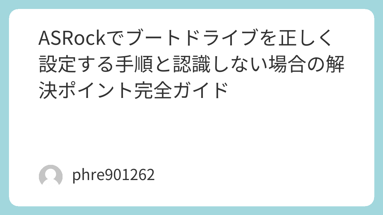 この記事では、ASRockでブートドライブを正しく設定する基本手順から、表示されないときの切り分け、つまずきやすいポイントまでまとめて解説します。