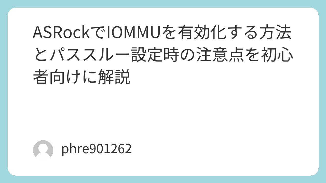 だからこそ、設定前に「何のためにIOMMUを使うのか」を自分の中で整理しておくと、作業全体がぶれにくくなります。