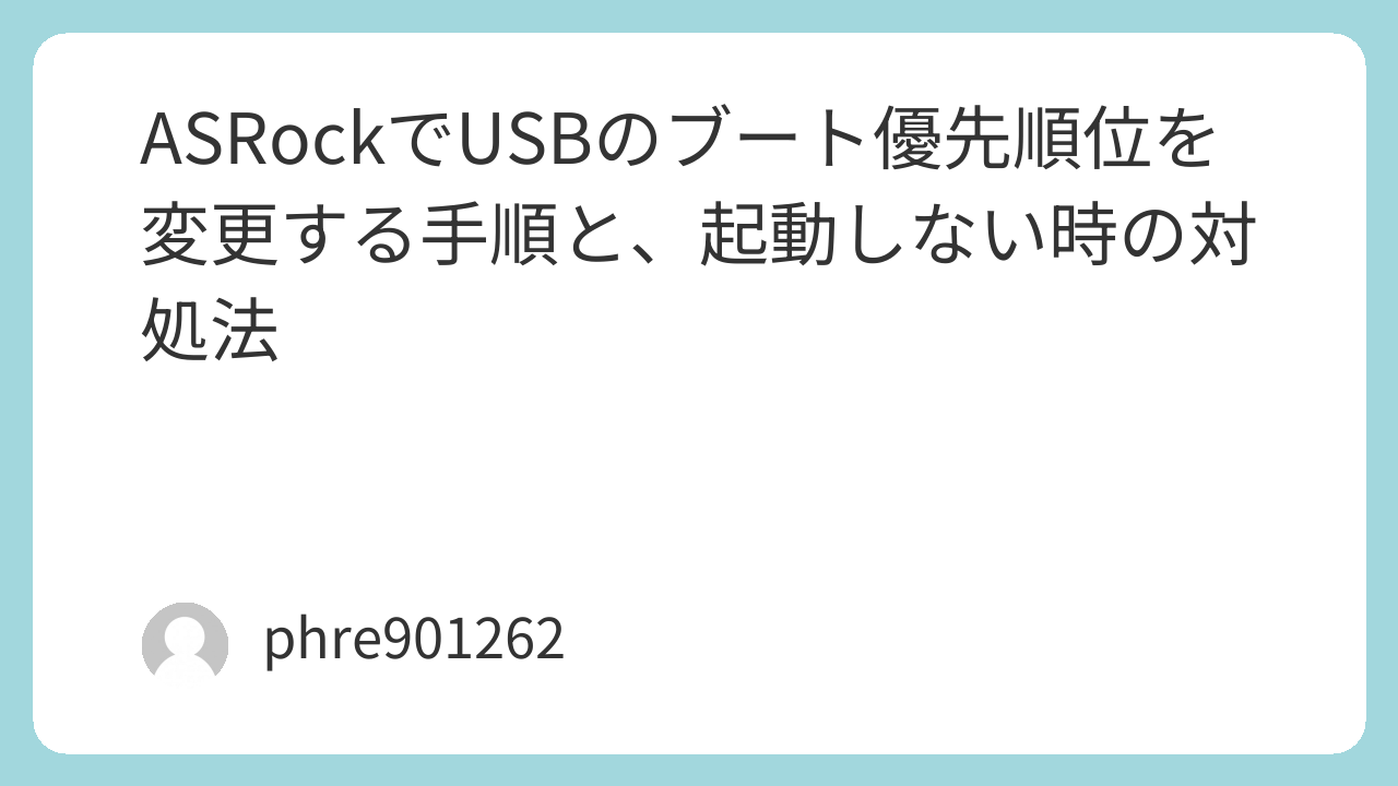 ASRockで「USBがBoot Priorityに出ない」ときは、焦って何度も設定を触るより、原因を順番に潰したほうが早いです。私が実際に詰まったのもこの部分でした。