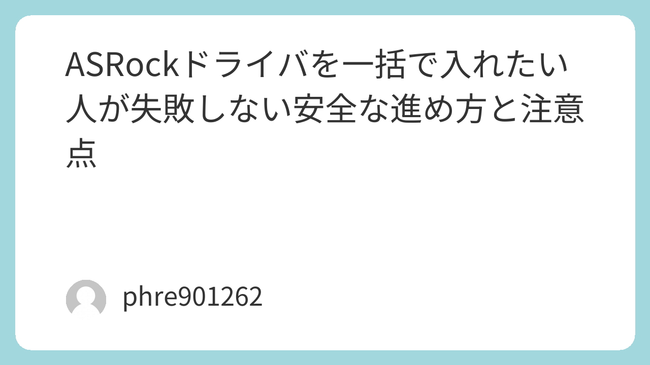 「asrock ドライバ 一括」で調べている人に伝えたいのは、一括導入は使いどころを選べばかなり便利だということです。ASRock Auto Driver InstallerやASRock APP Shopは、最初の土台づくりには役立ちます。しかし、そこから先まで丸ごと任せるのは少し危うい場面があります。公式の導線を活用しつつ、最後は公式の最新ドライバ一覧で確認する。この二段構えが、いちばん現実的で失敗しにくい進め方です。 (ASRock)