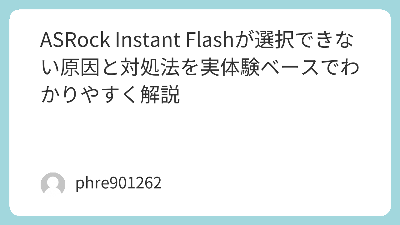 ASRock マザーボードのInstant Flashが選択できないとき、真っ先に疑うべきは故障ではなく、型番違い、ZIP未解凍、USBメモリの相性、USBポートの違い、接続機器の多さです。とくにBIOS更新は、普段のPC作業では気にしない細部がそのまま成功率に響きます。