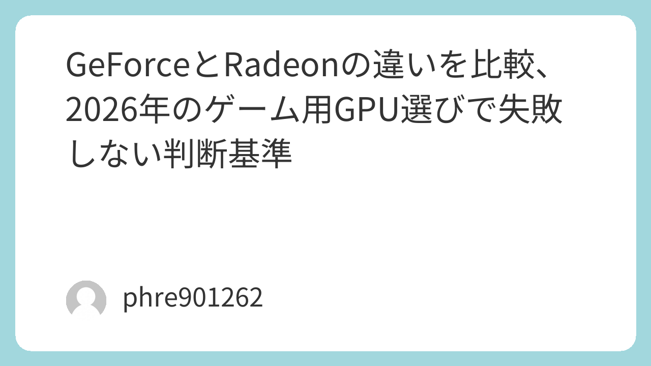 GeForceとRadeonの違いを比較、2026年のゲーム用GPU選びで失敗しない判断基準