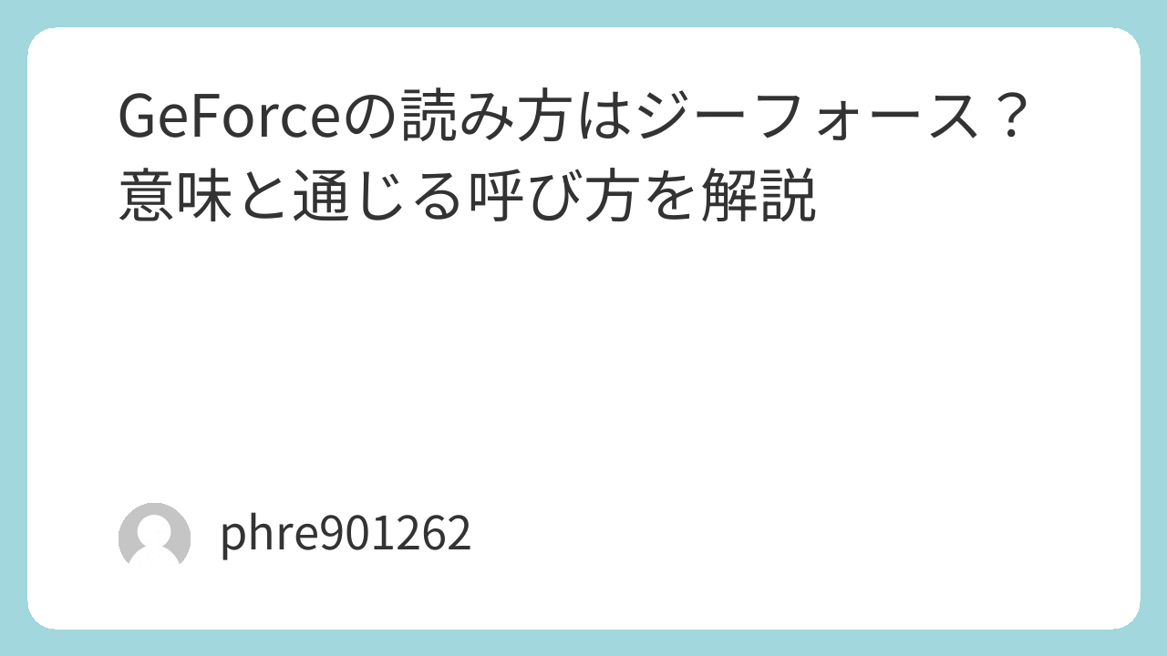 まず、GeForceは「ジーフォース」と読む。ここは固定でOKです。次に、「ゲフォ」は略称として使われることがあるけれど、最初は無理に使わなくていい。この順番で問題ありません。