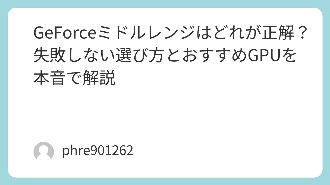 ミドルレンジという言葉は便利ですが、実はかなりあいまいです。人によっては「5万円前後のGPU」を指しますし、人によっては「フルHDで快適ならミドルレンジ」と考えます。