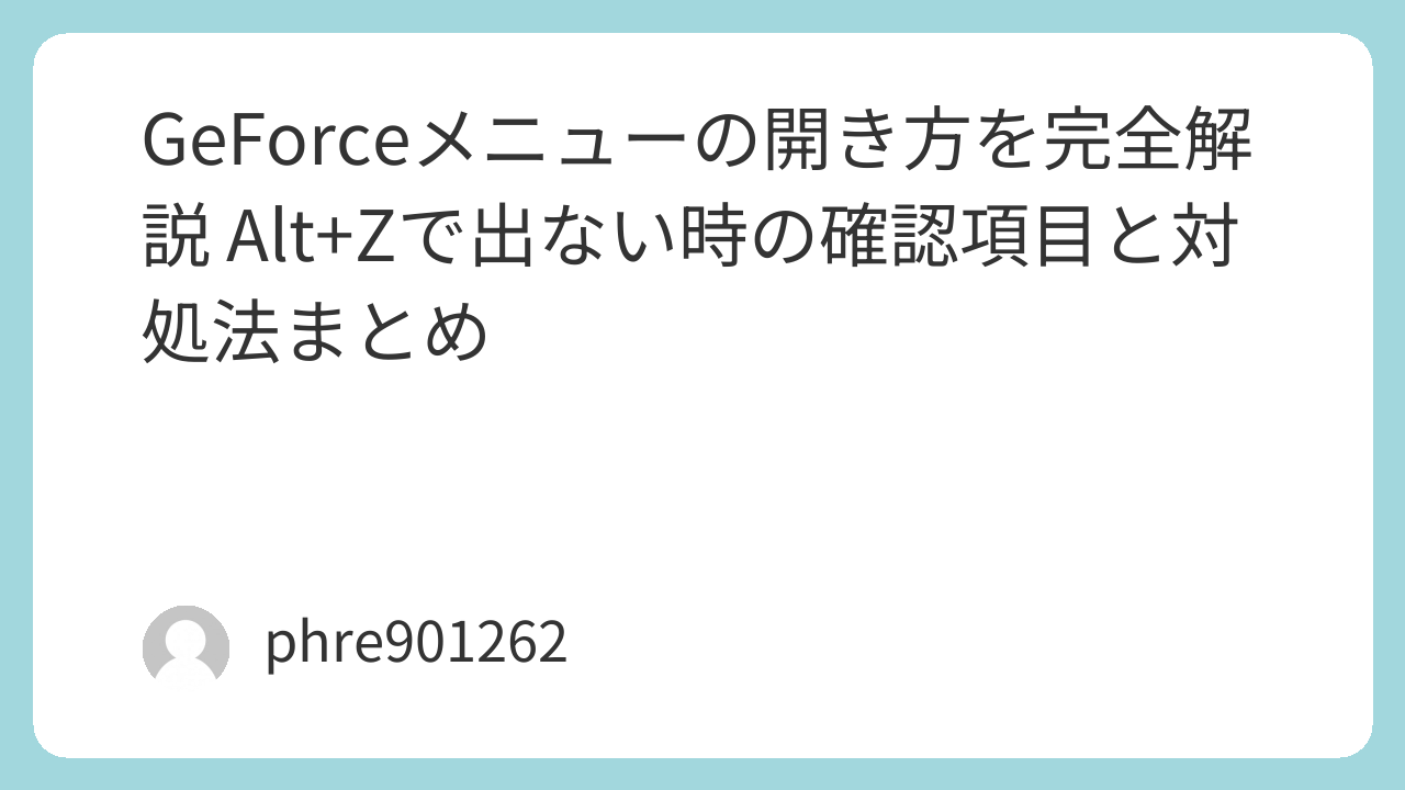 GeForceメニューの開き方を完全解説 Alt+Zで出ない時の確認項目と対処法まとめ