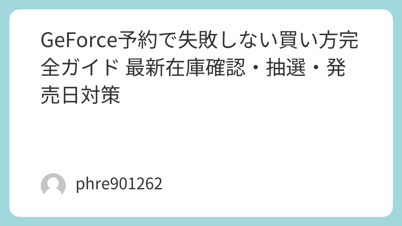 GeForce予約は、運だけの勝負ではありません。もちろん人気モデルは激戦です。それでも、準備した人ほど取りやすくなるのは間違いないです。予約ページを開くその前から勝負は始まっています。